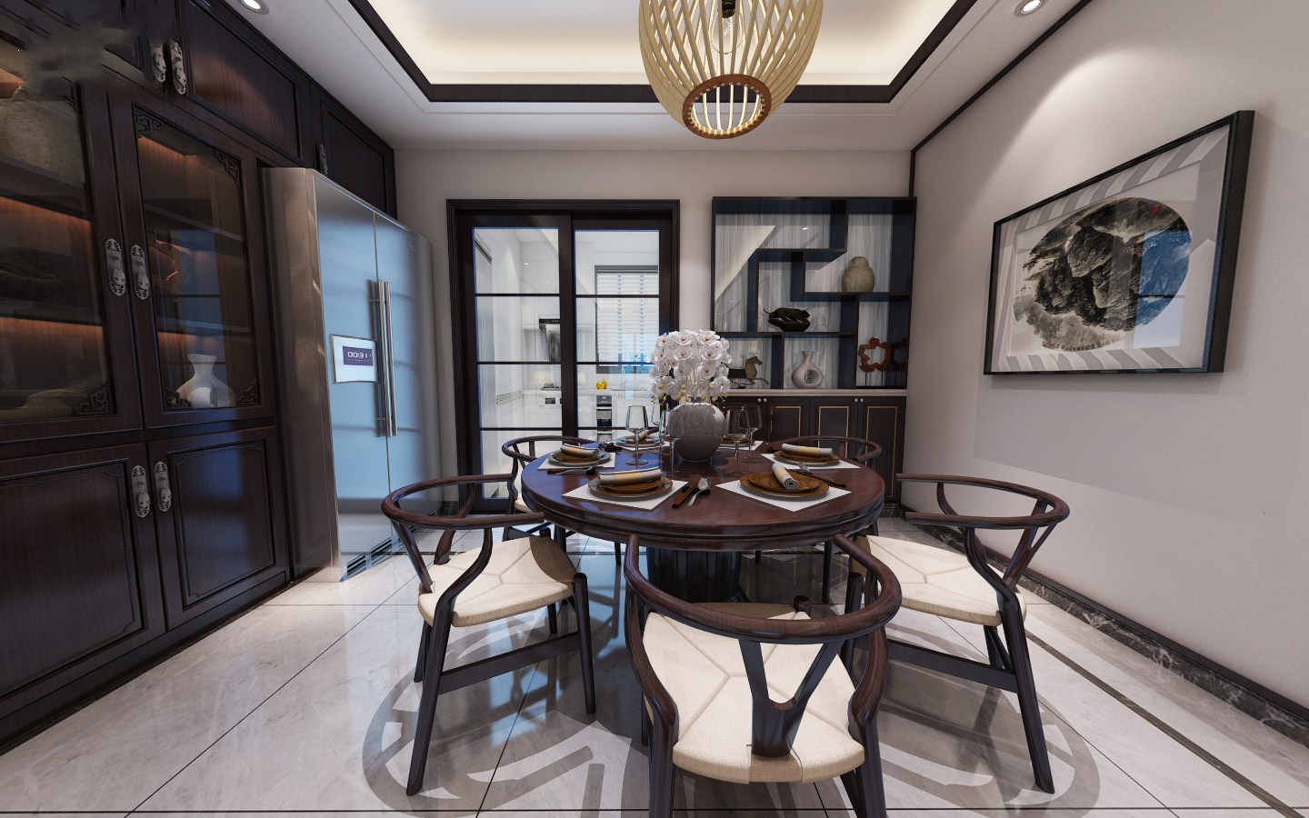 這是餐廳局部,整體(tǐ)風(fēng)格以簡歐形式設計(jì),局部可(kě)以看(kàn)出具有優雅,和諧,舒适的特點,色調以暖白(bái)爲主,将室内家具雕刻工(gōng)藝集中在裝飾和陳設藝術(shù)上,整體(tǐ)色彩暖色且很協調。既保留了古典歐式的典雅,又更适應現代生(shēng)活的休閑與舒适。